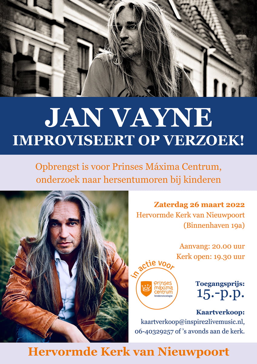 Toegangskaarten € 15.-p.p. Kinderen t/m 12 jaar € 5.- te bestellen bij: kaartverkoop@inspire2livemusic.nl of 06-40329257